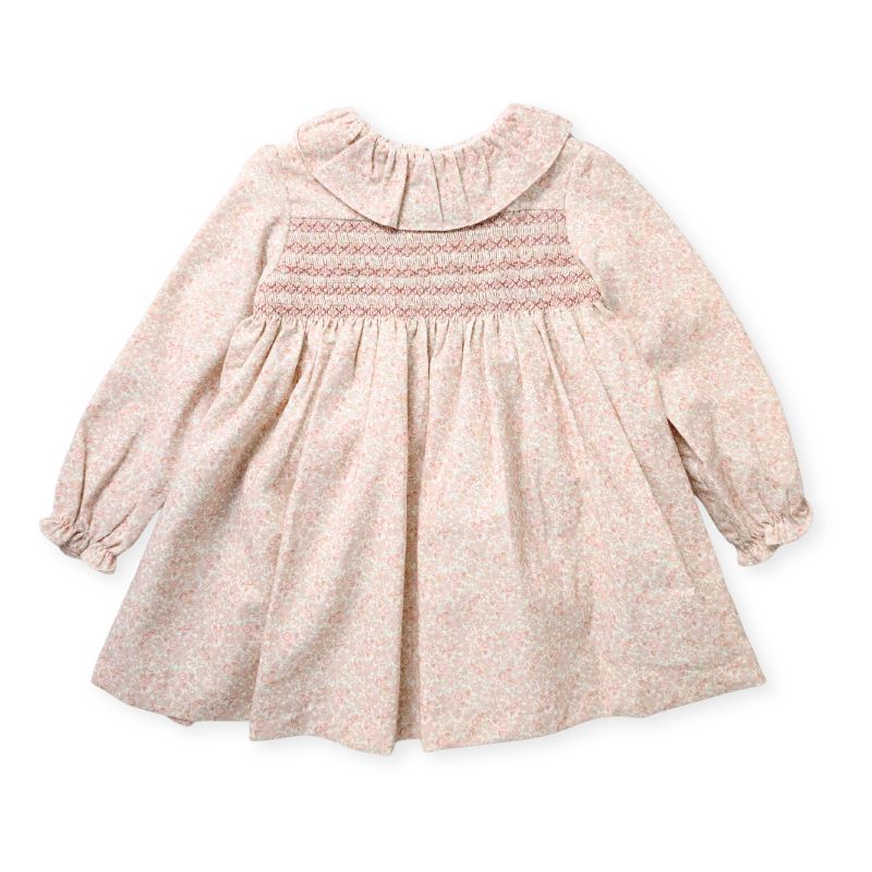 優しいピンクフラワーのスモッキングワンピース&ブルマ